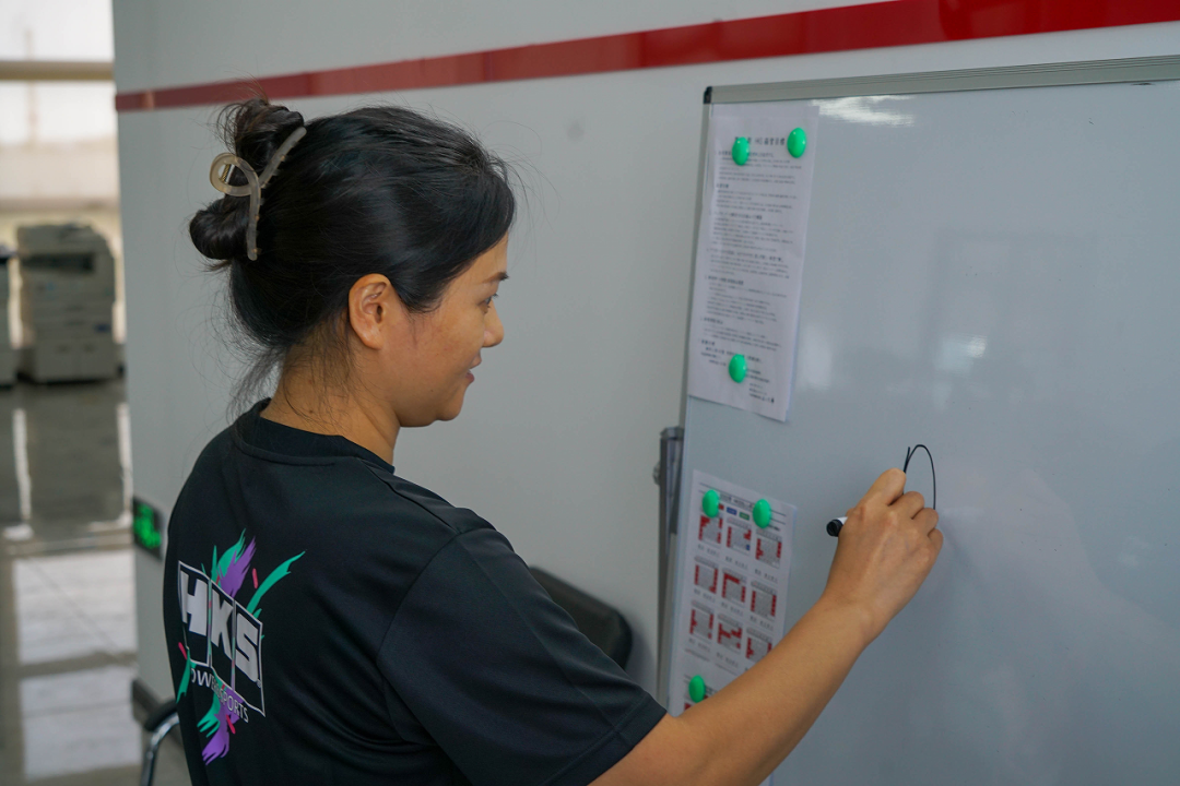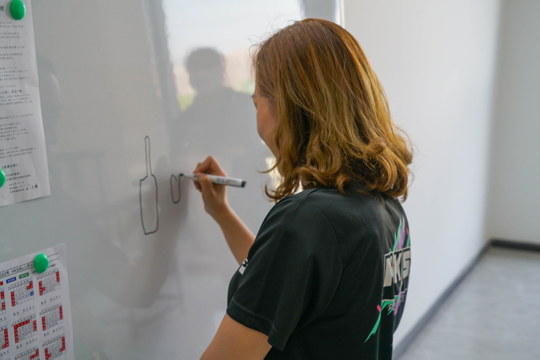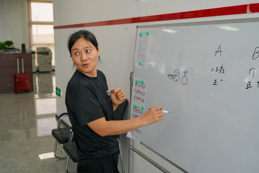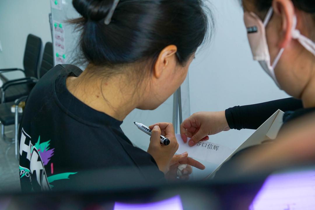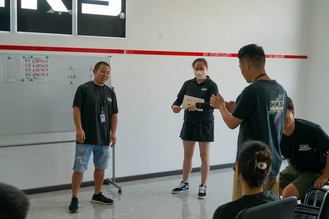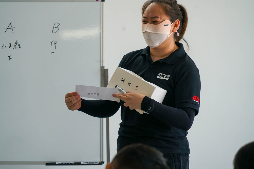 除了主持人丽姐和摄影师王鑫之外,其余的8名员工分成AB两组来进行小游戏battle——HKS版「你画我猜」