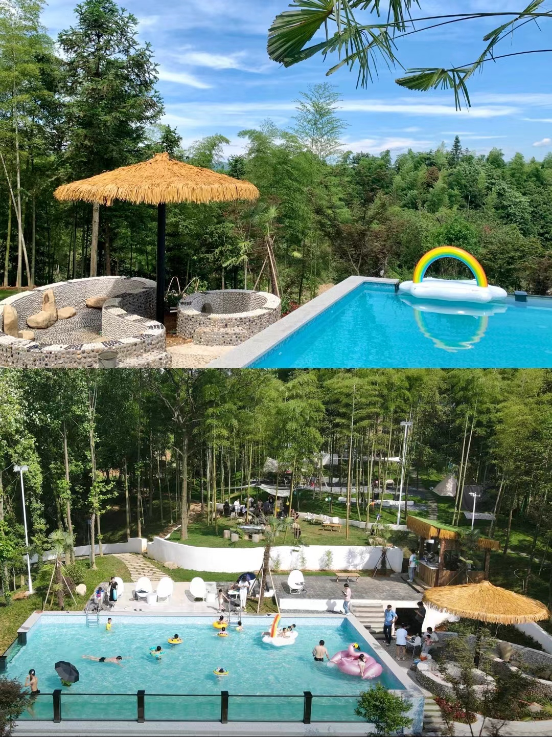 酒店拥有超大的无边泳池、户外露天温泉、烧烤区、盆景园艺区、室内外茶室、户外草坪露营区、儿童游乐区、私人影院、KTV、会议室、棋牌室、桌球室、健身房、室外乒乓球等设施,办理入住之后自由活动,大家可以自行选择项目游玩或者在房间休息。