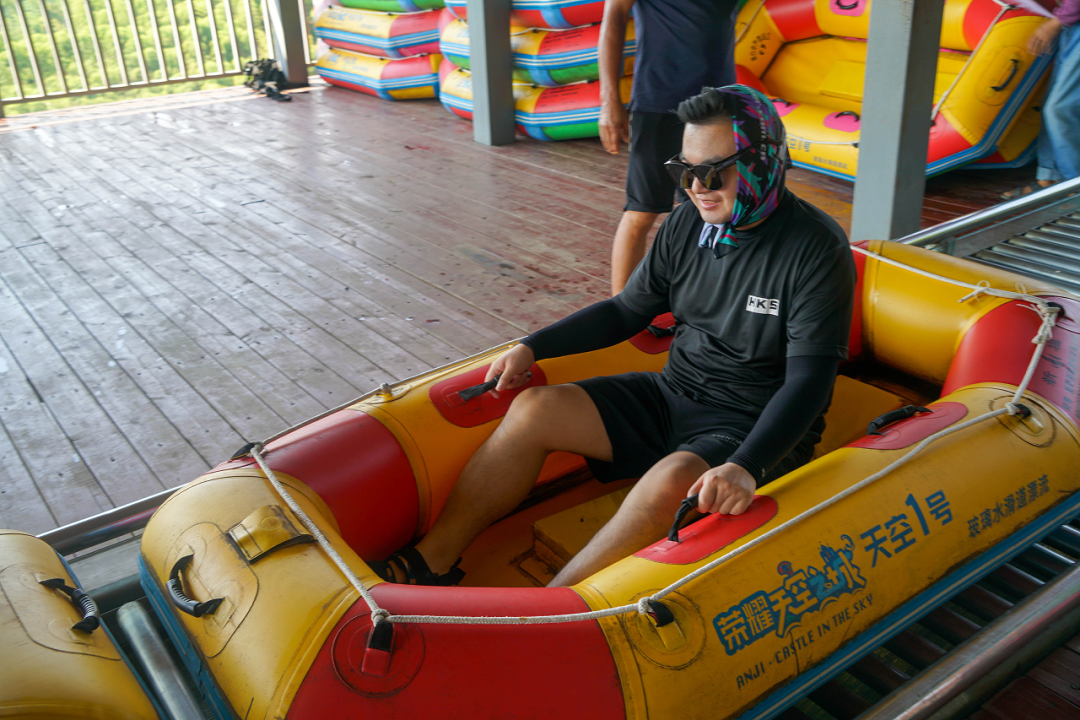 大家首先乘坐大巴前往“天空1号云端漂流”的起点,从名字中就可以感受到它的刺激!长达3.88公里的云端漂流,蜿蜒曲折盘亘在竹海之上,总落差足足有380米,从空中俯瞰宛若一条巨龙,气场十足。