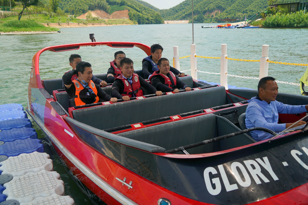 快艇极速冲向堤坝又在最后的瞬间漂移甩尾,超过360度的旋转,驾驶员大哥再三提醒抓紧扶手,蹬好脚蹬,背部紧贴座椅,腿部发力才不会被甩飞出去~