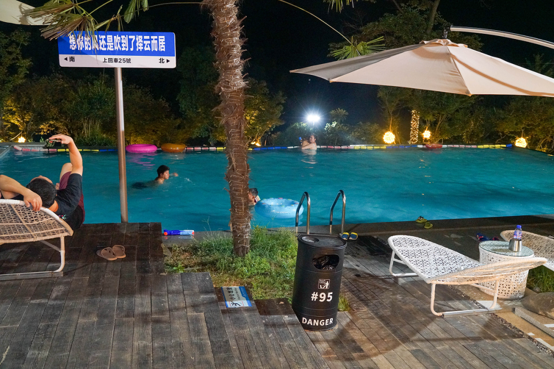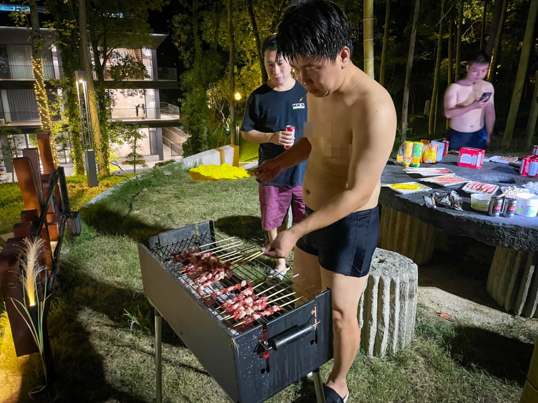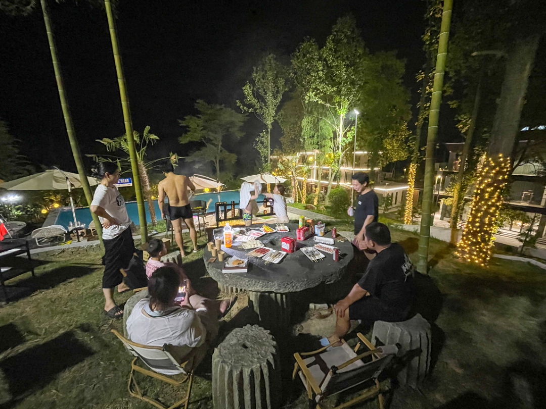 返回酒店,精彩的活动仍未结束,小伙伴们来到无边泳池旁,一起游泳、烧烤、小酌。