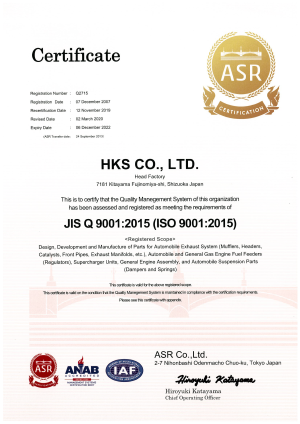 日本HKS取得ISO(国際標準化...