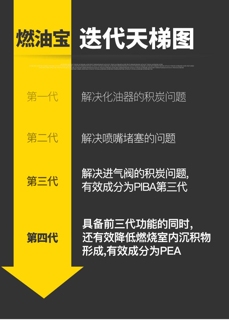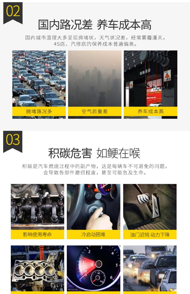 ・改装或者长期低速运转会导致沉积物附着在燃烧室和火花塞上,使用本产品可以轻松地对其进行强力清洁。
