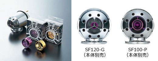 • SF120-G(颜色:金黄色)具有与标准鳍片相同的形状和声音质量,并且可以在从低增压到高增压的整个范围内产生强烈的高频声音。 SF100-P(颜色:紫色金属)强调了在两个阶段共鸣的连续声音,并具有平坦的音质,可抑制不同于标准鳍片的高频音量。