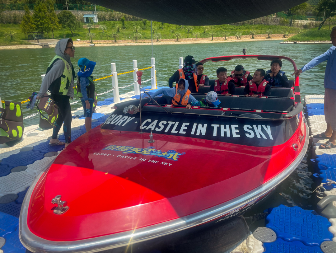接下来是漂移艇项目,堪称“水上速度与激情”,在第一圈的“普通难度”之后,为了安全,驾驶员大哥贴心地请女士和小朋友先下船,留下成年男同胞体验了一把“超神难度”。