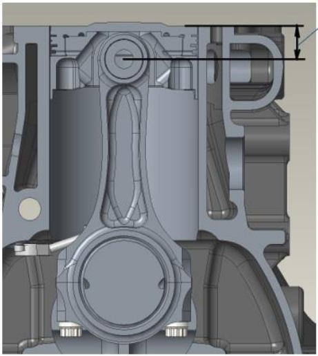 √新型两片式活塞使压缩高度更窄。可以延长连杆、增加冲程的同时,不提高发动机缸体的高度。