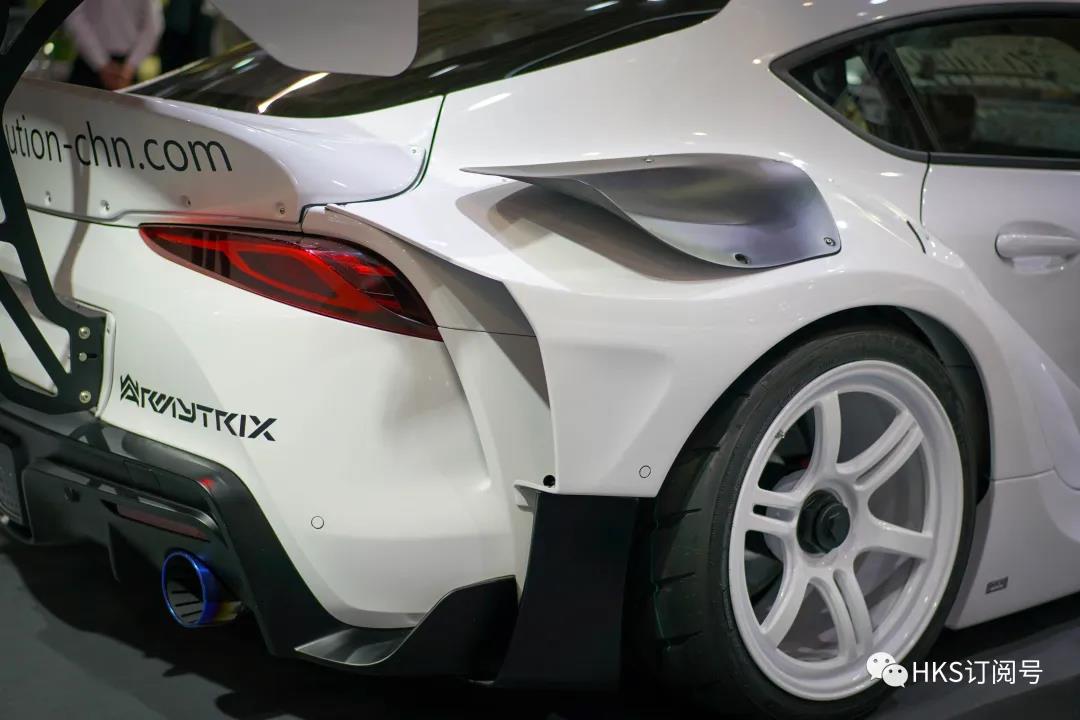 HKS Supra这套宽体车身让整台车都更具力量感。看起来这台A90就像是一款还未加涂装的SuperGT GT300赛车。