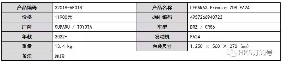 适用车型:新款GR86/BRZ ZD8 FA24