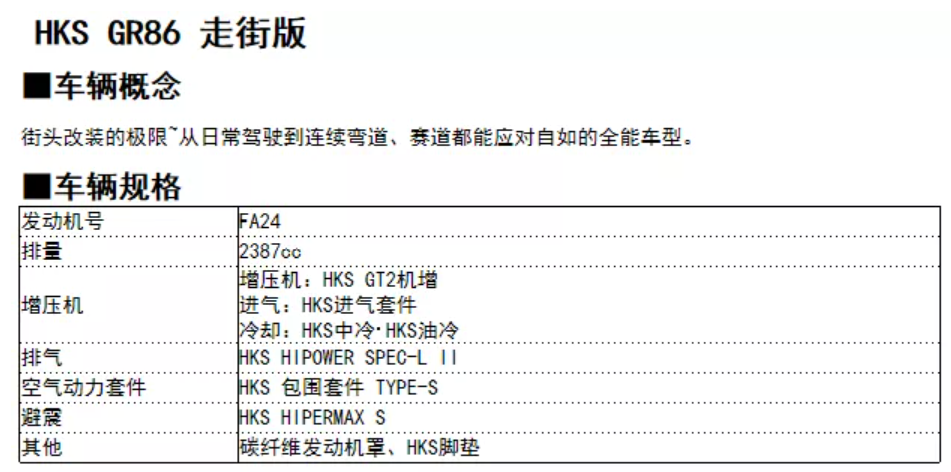 给大家介绍本次HKS 东京改装展的第一辆展车:GR86-赛道版