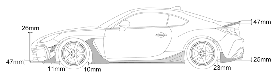 继承了HKS历代圈速挑战赛中使用的前唇造型。使GR86(BRZ)的正面造型更加令人印象深刻。