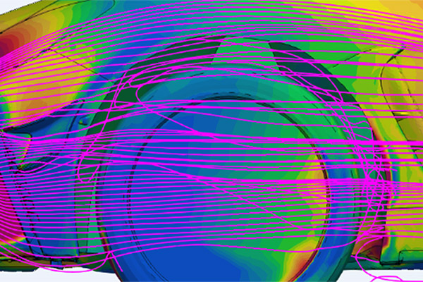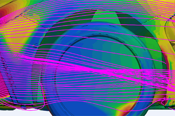 行驶风的速度呈螺旋状增加(低压),轮胎罩内的湍流(高压)被排出。目的是通过降低轮胎外壳内的压力来增加抓地力。