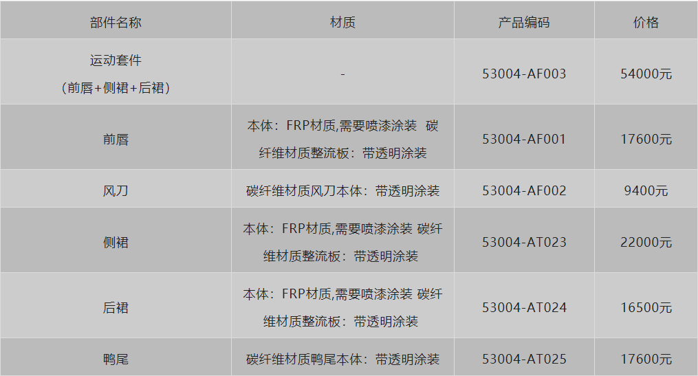 ※报价单中不含尾翼