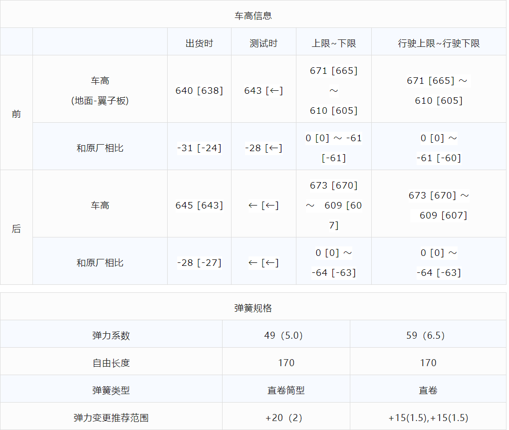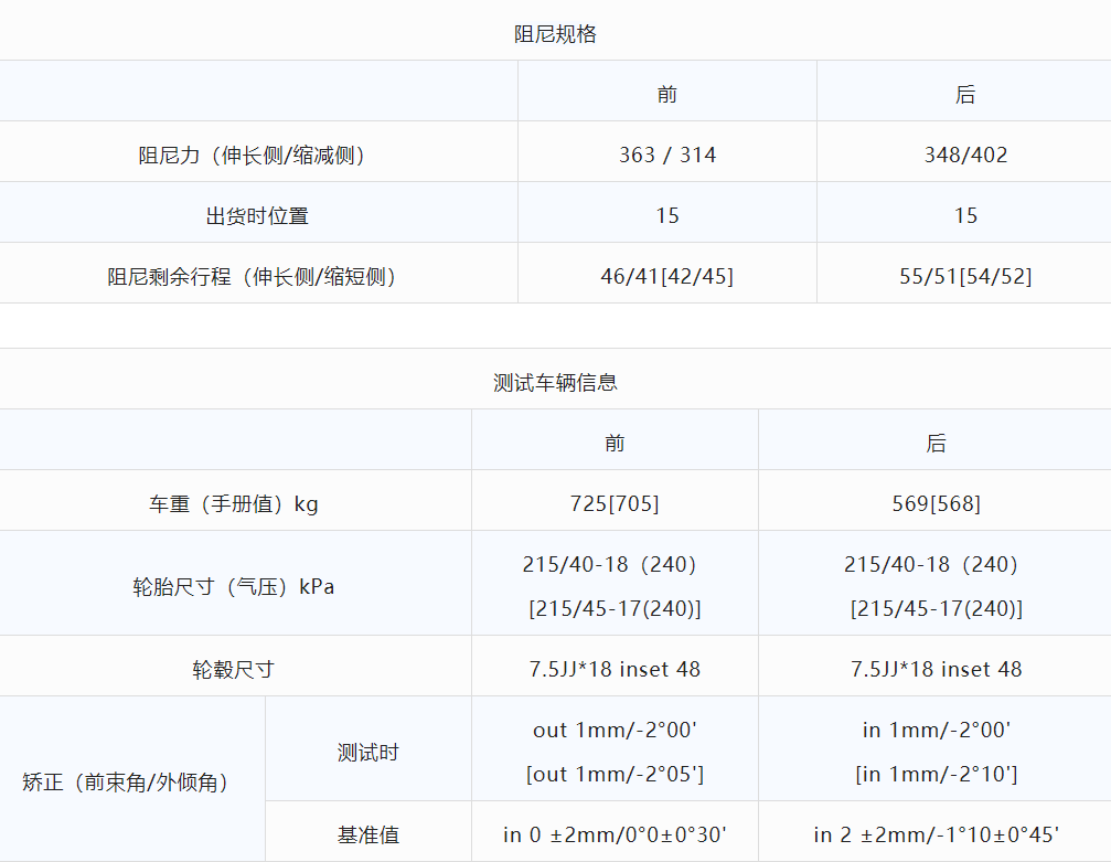 ●另外我们对于弹力系数的选择也做了斟酌,在前避震弹力系数和原厂相同的情况下,后避震的弹力系数高于原厂设定,来确保较高的稳定性。对于喜欢运动型驾驶的用户也可以选择降低1K来使用,这方面的测试也都已完成。