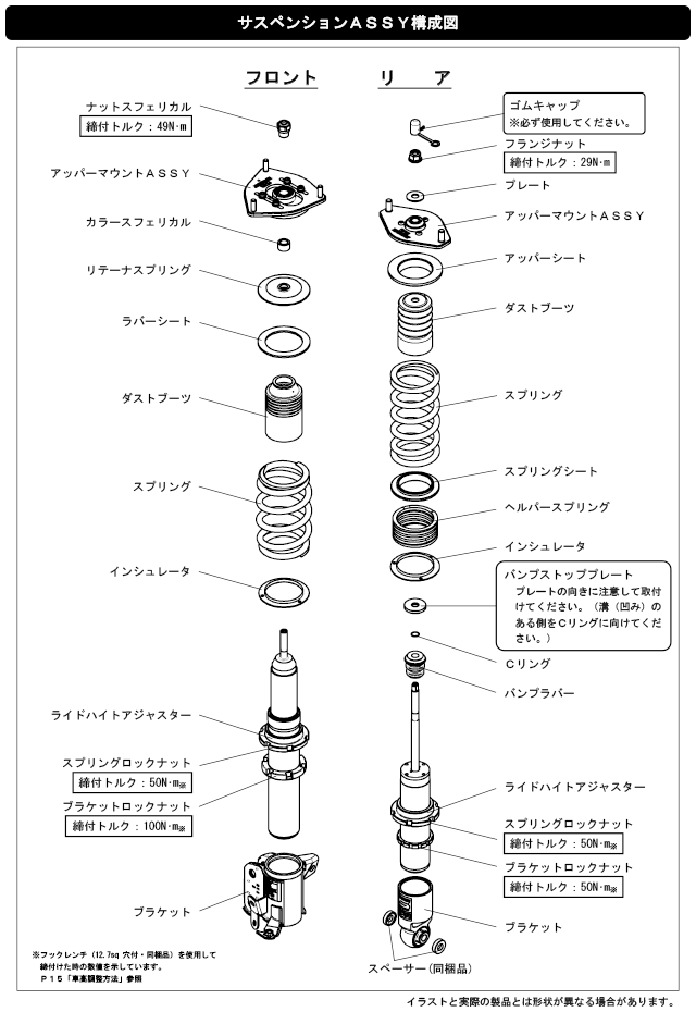 ●由于AT车型的重量不同,如果直接安装的话,会导致前部稍低,因此请在安装测试时调整需要的高度。