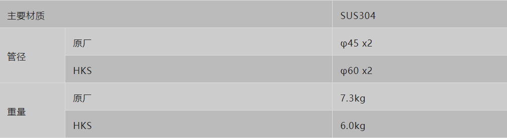 √定制管径,最大程度发挥发动机性能和特性 相较于原厂的45mm管径,HKS将管径扩大到60mm,因此与涡轮连接的管径变为60mm,可以有效提高输出 √运动声浪
