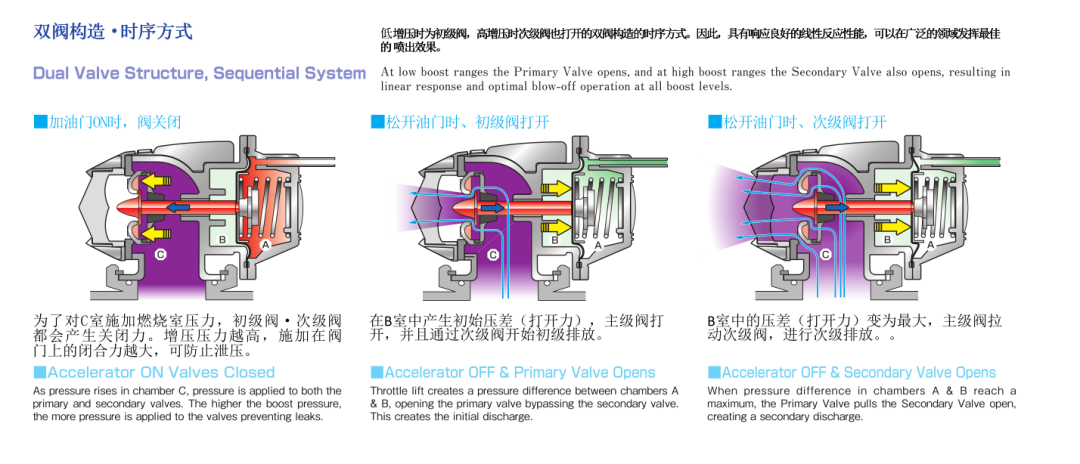 松开油门时,主阀将立即打开并迅速抑制涡轮的反向吹回。