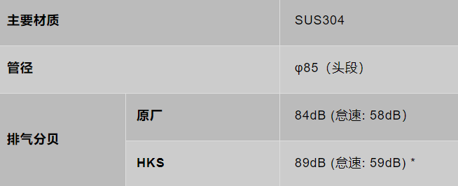 * 安装了HKS SUPER TURBO中尾段的数据为93dB(怠速:61dB)。