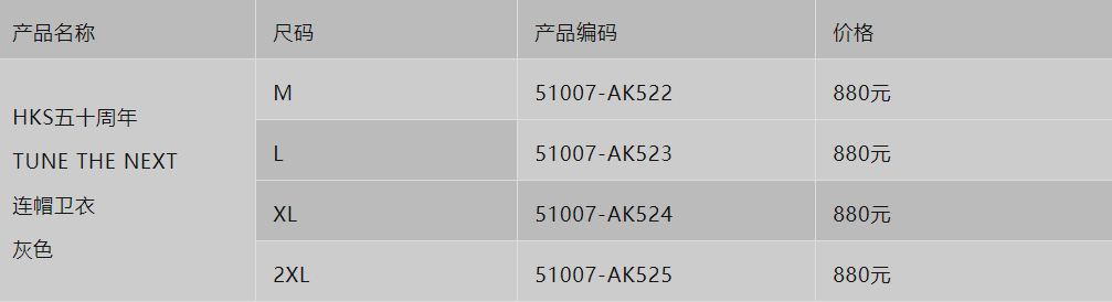 √HKS 50周年限定Tune the Next 连帽卫衣