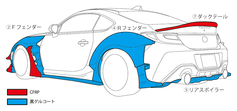 | 53004-AT029 | HKS Body Kit Type-R Full Kit | ①~⑦ |