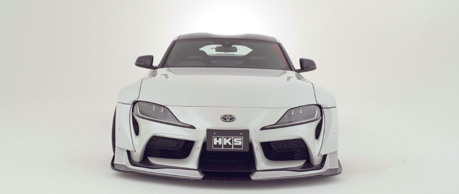 HKS一直在研发“ CT230R”,“ TRB-03”,“ TBR-04”等TIME ATTACK车辆,这些机器遵循了积极结合空气动力学的设计。新GR Supra的第一个HKS宽体套件。